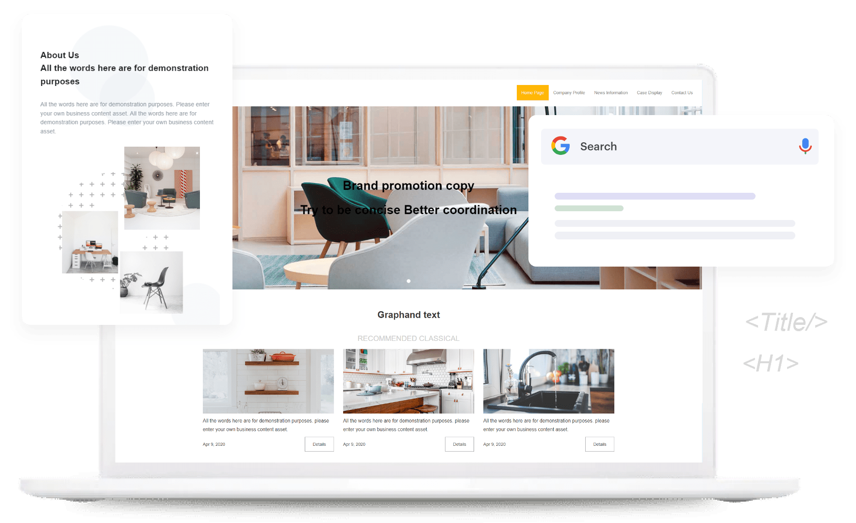 - 擁有設計師獨家設計的模板,網站建設只需將模塊拖到編輯器中,編輯內容,保存并發(fā)布您的網站!簡單高效,精致美觀。